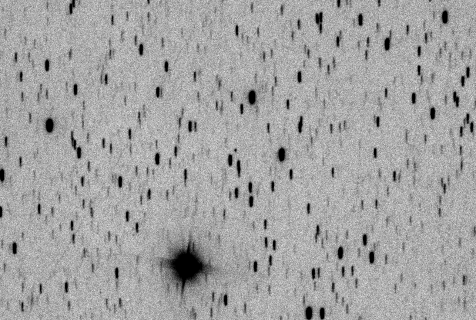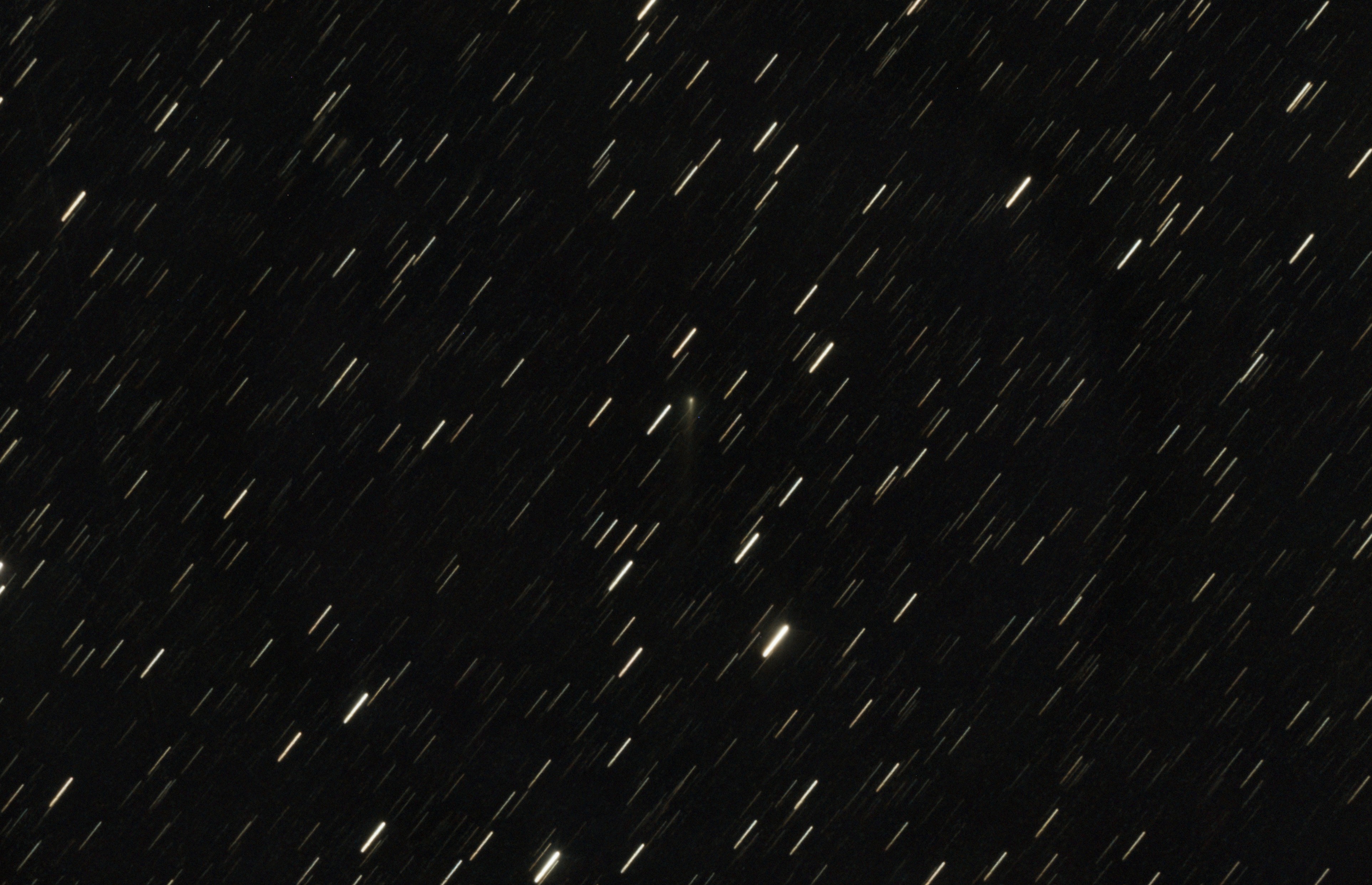 А что же с нашим межзвездным гостем? Приехав домой, я обработал все снимки с межзвездной кометой, в том числе калибровочные. Каждые пять из тридцати кадров я сложил, получив шесть пятиминутных экспозиций, и сделал из них анимацию, чтобы можно было заметить движение. Вот он, тот самый 3I/ATLAS!