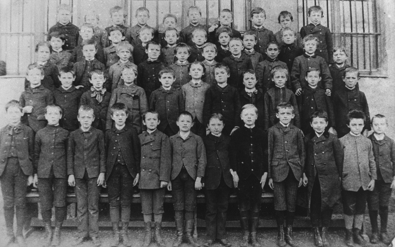В гимназии, в которую Эйнштейн перешел 1 октября 1888 года в возрасте 9,5 лет, положение резко изменилось — уроков католической веры он больше не посещал 5. В отличие от начальной школы, где Эйнштейн был единственным евреем среди учеников, в гимназии имени Луитпольда в одном классе с Альбертом учились еще два еврея, а всего их в школе было 5%, что в 2,5 раза превосходило процент еврейского населения Мюнхена. Гимназия Луитпольда была на хорошем счету: число учеников постоянно росло. В год поступления Эйнштейна их было 684, а в 1894 году, когда Альберт досрочно покинул учебное заведение, — 1330. Классы были переполнены: на фото с Эйнштейном, сделанном в первый год его учебы в гимназии, можно насчитать 50 его одноклассников [6, с. 31].