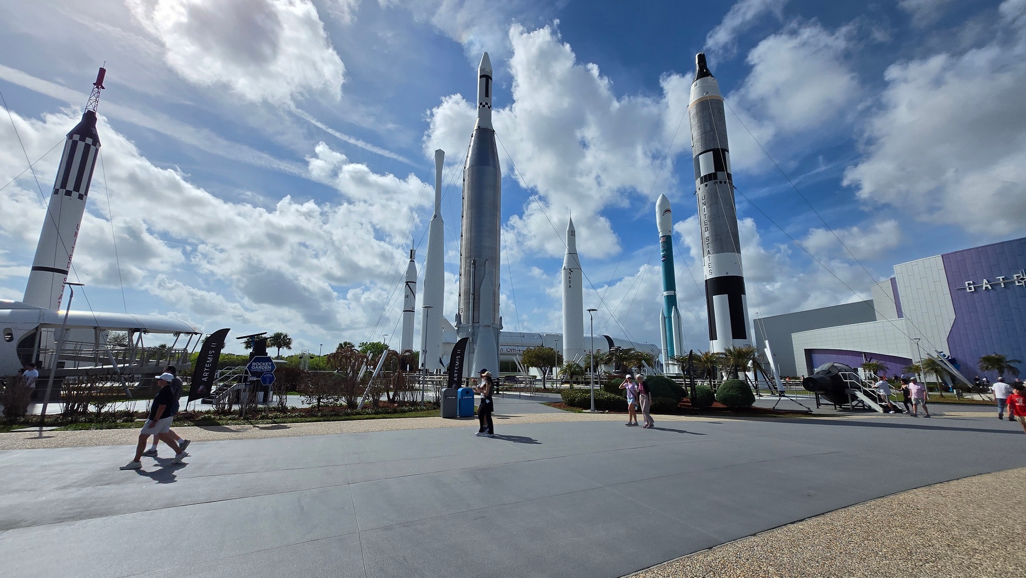 7 Rocket Garden — открытая площадка, где выставлены исторические ракеты-носители серий Mercury, Titan, Juno, Saturn и др.